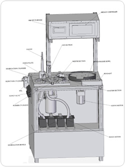 This machine enabled the end-user to carry out the process at higher speed, with a batch of 100 bearings, in a couple of minutes, with just one operator. This machine automation was done with the help of S7-200 CPU, User interface OP-73 and a special drive.